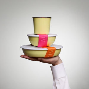 Mit dem YIV Emaille Set hast du den perfekten Einstieg in die YIV Welt. Es enthält alles, was du für einen nachhaltigen Alltag brauchst: 1 Becher, 1 Schale, 1 Teller sowie jeweils einen passenden Deckel, eine Dichtung und ein Band. Damit bist du bestens ausgestattet – egal ob zu Hause, im Büro, beim Camping oder unterwegs.