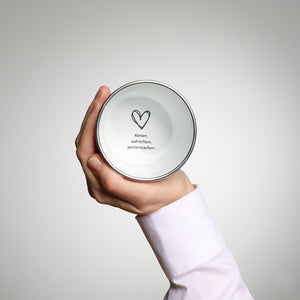 „Die Innenschrift im Bodeninnern ist wirklich toll. Sie erinnert mich immer wieder daran, durchzuatmen oder mir mit jedem Schluck bewusst zu machen, wie gut es mir geht.“