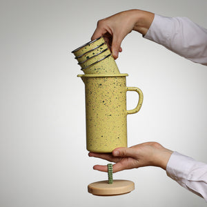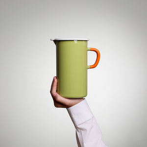 Der YIV Emaille Krug ist nicht nur ein echter Blickfang, sondern auch ein Paradebeispiel für Nachhaltigkeit. CO₂-neutral und mit Wasserkraft in Österreich handgefertigt, begleitet er dich im Alltag – ob in der Küche, beim Servieren oder unterwegs.