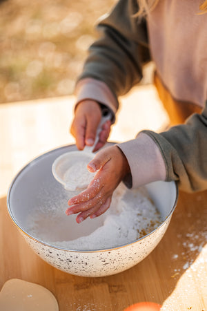 Die YIV Emaille Schüssel 22 cm ist ein Allrounder für Küche und Alltag. Mit Deckel, Dichtung und Band bleibt alles frisch, sicher verschlossen und transportfähig – egal ob zu Hause, beim Camping oder fürs Picknick. Durch ihre Größe eignet sie sich ideal für größere Portionen Salat, Pasta oder auch zum Backen. Und: Du kannst darin sogar Brot backen – perfekt für bis zu 400 g Mehl.