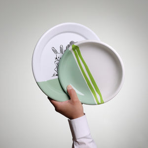 Melanie: „Meine Kids lieben ihre Teller für Zmorgä, Zmittag & Znacht – immer im Einsatz. Praktisch: der erhöhte Rand hält das Essen da, wo es hingehört. Leicht, stapelbar, Freude pur im Alltag!“