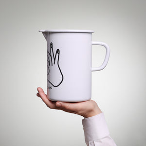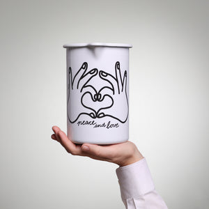 Diese Krug-Variante trägt vorne den Schriftzug „Love and Peace“. Das Motiv ist in Zusammenarbeit mit der Künstlerin WOW entstanden. Hinter WOW steht die visuelle Künstlerin und Designerin Milica Slacanin Perez, deren klare, positive Illustrationen die Grenze zwischen Design und Kunst ausloten und für Body-Positivity und eine starke, mutige Linie stehen.