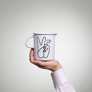 Emaille Mass-Krug YIV 5/8 Liter – nachhaltig, vielseitig & handgefertigt, Peace and Love