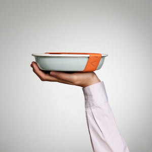 Einfach die Dichtung in den Deckel einsetzen, den Deckel auf Teller, Schüssel oder Form legen, das YIV Band mittel darumziehen – und schon bleibt alles frisch, dicht und transportbereit.