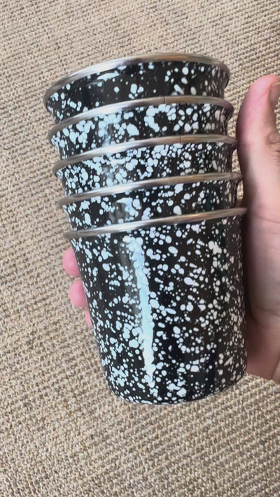 Der YIV Emaille Becher mit Innenschrift ist ein besonderes Allround-Talent – ob zu Hause, unterwegs, beim Camping oder Wandern. Außen schwarz gesprenkelt, innen im edlen Granit-Look und mit einer liebevollen Botschaft am Becherboden, wird er zum einzigartigen Lieblingsstück für Groß und Klein.