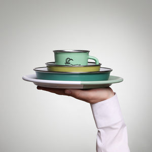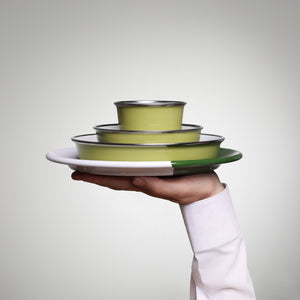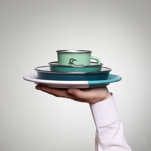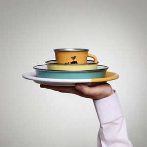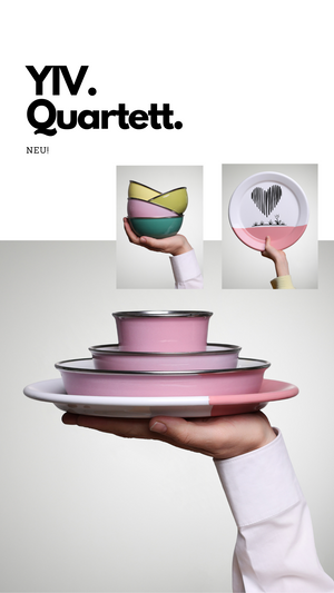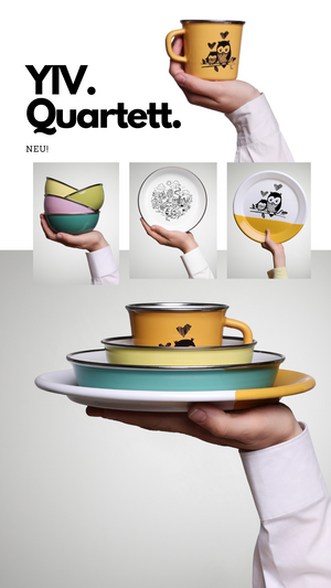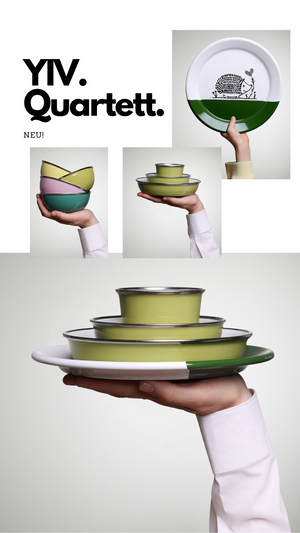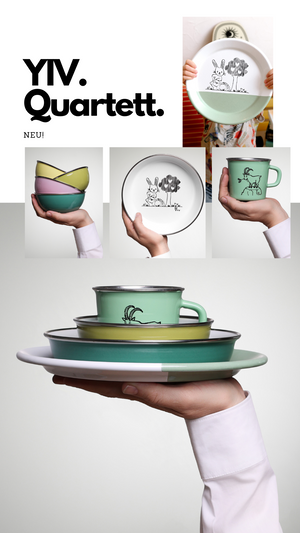 Das YIV Emaille Quartett besteht aus Becher, Schale, Teller mit hohem Rand und Boden sowie einem flachen, leichten Teller. Gemeinsam bilden sie das perfekte Set für Alltag, Familie, Outdoor und Camping – vielseitig, nachhaltig und mit zeitlosem Design.